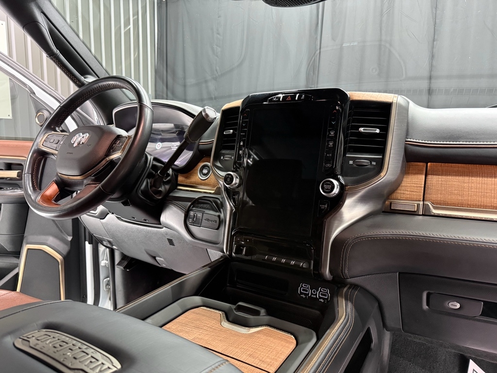 Vehicle Details: Discover exceptional capability with this 2024 Ram 3500 Longhorn, now available in Bandera, TX. With just 23,138 miles, this low-mileage diesel powerhouse delivers performance and durability where it counts. Equipped with a stout 6-cylinder, 6.7L Cummins diesel engine and 4WD with Dual Rear Wheels, this truck is built for heavy towing, long hauls, and demanding work while maintaining premium comfort. The Longhorn trim blends rugged utility with upscale features: leather seats provide superior comfort, while the Off-Road Package adds confidence on rough terrain. Stay connected and entertained with Apple CarPlay, and enjoy daily convenience from the heated steering wheel. Advanced safety tech like Lane Keep Assist enhances highway confidence and reduces driver fatigue. Every component reflects purpose—powerful towing capacity, refined interior appointments, and modern connectivity. Priced to sell, this 2024 Ram 3500 Longhorn offers the best price in the area for a low-mileage diesel dually with these options. Whether you're hauling heavy equipment, towing a large trailer, or seeking a comfortable, capable truck for Texas roads, this Ram checks every box. Located in Bandera, TX, it's ready for immediate inspection and test drive. Don't miss this rare combination of low miles, premium Longhorn features, and unbeatable value—contact us today to secure this top-tier diesel dually before someone else does. Equipment: Get the big jobs done with this one-ton truck. From hauling to towing it is ready for your toughest jobs. It has four wheel drive capabilities. The Ram 3500 has auto-adjust speed for safe following. The vehicle offers Android Auto for seamless smartphone integration. Apple CarPlay: Seamless smartphone integration for the Ram 3500 - stay connected and entertained on the go! See what's behind you with the back up camera on this Ram 3500. Maintaining a stable interior temperature in this 2024 Ram 3500 is easy with the climate control system. This unit features cruise control for long trips. This vehicle has a diesel engine. This 1 ton pickup has dual wheels for expanded hauling options. The Ram 3500 has a 6 Cyl, 6.7L high output engine. The Ram 3500's Forward Collision Warning system alerts the driver to potential front-end collisions, enhancing safety. This 2024 Ram 3500 features a hands-free Bluetooth phone system. This Ram 3500 is pure luxury with a heated steering wheel. With the keyless entry system on this unit you can pop the trunk without dropping your bags from the store. This unit stays safely in its lane with Lane Keep Assist. The leather seats in the Ram 3500 are a must for buyers looking for comfort, durability, and style. With the adjustable lumbar support in it your back will love you. You'll never again be lost in a crowded city or a country region with the navigation system on this unit. An off-road package is equipped on it. This 1 ton pickup has a premium sound system installed. Start this Ram 3500 from inside with remote start. The premium quality running boards make it easier to get in and out of this unit and give it a nice look too. The Ram 3500 embodies class and sophistication with its refined white exterior. This Ram 3500 is equipped with the latest generation of XM/Sirius Radio. Packages: Quick Order Package 2HK Longhorn Longhorn Level 1 Equipment Group: Google Android Auto; SiriusXM Radio Service; Blind Spot and Cross Path Detection; For Details Visit DriveUconnect.com; For More Info Call 800-643-2112; Integrated Voice Command with Bluetooth; LED Bed Lighting; Connectivity - US/Canada; Power Deployable Running Boards; 12" Touchscreen Display; GPS Navigation; 4G LTE Wi-Fi Hot Spot; GPS Antenna Input; SiriusXM with 360L; Global Telematics Box Module; Connected Travel and Traffic Services; Alexa Built-In; Apple CarPlay; Off-Road Information Pages; Selectable Tire Fill Alert; Trailer Tow Pages; Disassociated Touchscreen Display; HD Radio; Ramcharger Wireless Charging Pad; Uconnect 5 Navigation with 12.0" Display Radio; MOPAR Spray in Bedliner; 17 Speaker Harman/kardon Premium Sound Safety Group: Blind Spot and Cross Path Detection; Adaptive Cruise Control with Stop; Adaptive Steering System; Full Speed Forward Collision Warning Plus; Lane Keep Assist Towing Technology Group: Center Stop Lamp with Cargo View Camera; Surround View Camera System; Trailer Reverse Guidance Protection Group: Transfer Case Skid Plate Shield Dual Rear Wheels: Clearance Lamps; LT235/80R17E BSW AS Tires; 17" Steel Spare Wheel; Box and Rear Fender Clearance Lamps; Center Hub; 6000# Front Axle with Hub Extension; 17" X 6.0" Polished Aluminum Wheels; Dual Rear Wheel Fender Flare Tracking; 14 000 lbs GVWR Power Sunroof Blind Spot and Cross Path Detection 5th Wheel/gooseneck Towing Prep Group Center Stop Lamp with Cargo View Camera Adaptive Steering System Clearance Lamps **Equipment listed is based on original vehicle build and subject to change. Please confirm the accuracy of the included equipment by calling the dealer prior to purchase.**