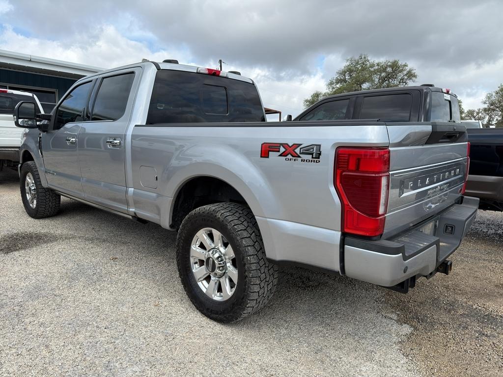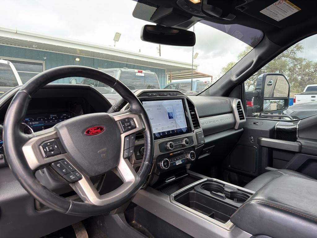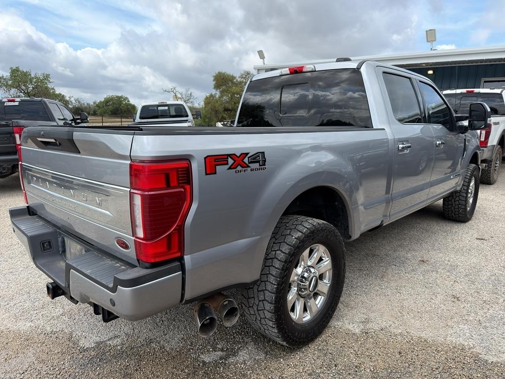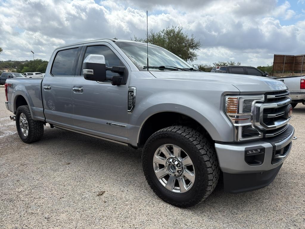 Vehicle Details: Power and luxury meet in this 2022 Ford F-250 Super Duty Platinum 4WD, now available in Bandera, TX. Equipped with the robust V8 6.7L diesel engine, this Super Duty delivers exceptional towing capability and diesel efficiency for work or weekend adventures. The Platinum trim brings upscale comfort with premium leather, advanced technology, and thoughtful convenience features throughout the cabin. Stay connected and on course with built-in Navigation and XM Radio for entertainment on long drives. Safety and awareness are enhanced by Cross-Traffic Alert, helping prevent collisions while reversing in busy parking areas. The heated steering wheel adds year-round comfort for chilly mornings in the Hill Country. This truck is backed by a CARFAX 1-Owner report, reflecting responsible ownership and documented service history. Rugged capability meets refined amenities: heavy-duty towing equipment, 4WD traction for rough roads or inclement weather, and a sturdy chassis ready for demanding jobs. The exterior commands attention with modern styling and a bold presence, while the interior is designed for driver-focused control and passenger comfort. Located in Bandera, TX, this 2022 Ford F-250 Super Duty Platinum is ideal for drivers seeking diesel power, premium features, and confidence on the road. Schedule a test drive today to experience its strength and luxury firsthand. Equipment: This three-quarter ton truck can tow almost anything. This model has four wheel drive capabilities. Anti-lock brakes will help you stop in an emergency. The vehicle offers Android Auto for seamless smartphone integration. This model offers Apple CarPlay for seamless connectivity. Protect this vehicle from unwanted accidents with a cutting edge backup camera system. Good News! This certified CARFAX 1-owner vehicle has only had one owner before you. This vehicle has a clean CARFAX vehicle history report. Set the temperature exactly where you are most comfortable in this model. The fan speed and temperature will automatically adjust to maintain your preferred zone climate. This unit's Cross-Traffic Alert: Safeguarding you from unexpected traffic when reversing. This Ford F-250 features cruise control for long trips. With a diesel engine you will be pleased with the power, torque, and fuel efficiency gains. The Ford F-250 has a V8, 6.7L high output engine. Keep your hands warm all winter with a heated steering wheel in it . The leather seats in this unit are a must for buyers looking for comfort, durability, and style. Help alleviate lower back pain with the driver seat lumbar support in this model. The installed navigation system will keep you on the right path. An off-road package is equipped on this model. This unit is outfitted with a Powerstroke diesel engine Start this unit from inside with remote start. This unit shines with an exquisite metallic silver exterior finish. A trailer braking system is already installed on the Ford F-250. with XM/Sirus Satellite Radio you are no longer restricted by poor quality local radio stations while driving this 3/4 ton pickup. Anywhere on the planet, you will have hundreds of digital stations to choose from. Packages: FX4 Off-Road Package: Transfer Case and Fuel Tank Skid Plates; Hill Descent Control; Off-Road Specifically Tuned Shock Absorbers; Unique FX4 Off-Road Box Decal Order Code 703A: LT275/65Rx20E OWL A/T (4) Tires; 10 000 Lb Payload Package GVWR; Unique Platinum Leather 40/console/40 Seats; B&O Sound System by Bang and Olufsen Electronic-Locking with 3.31 Axle Ratio Transfer Case and Fuel Tank Skid Plates LED Roof Clearance Lights **Equipment listed is based on original vehicle build and subject to change. Please confirm the accuracy of the included equipment by calling the dealer prior to purchase.**